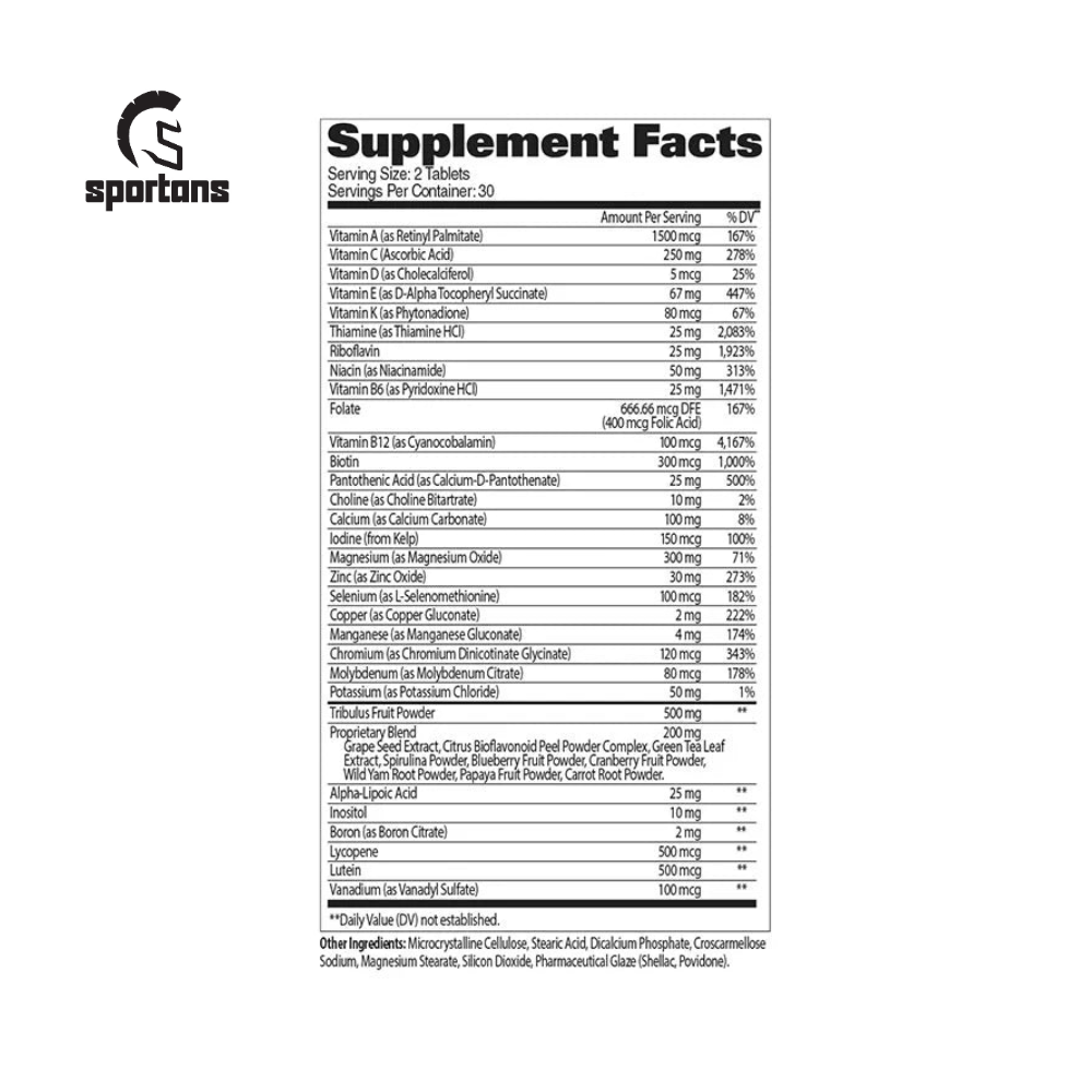 Tribulus Terrestris Fruit Powder, Alpha-Lipoic Acid, Inositol, Boron, Lycopene, Lutein, and Vanadium.